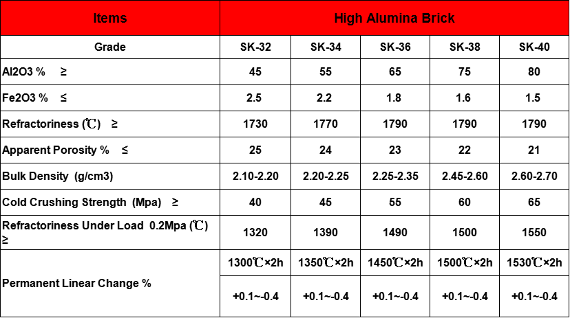 Physical Properties And Chemical Composition For Refractory Brick: